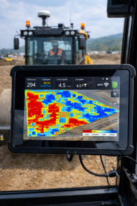 지능형 다짐 기술은 롤러 장비에 부착된 GPS와 가속도 센서를 통해 지반의 견고함(강성)을 실시간 측정합니다. 이 데이터는 무선 네트워크를 통해 관제 센터와 운전석 태블릿으로 전송되며, AI 알고리즘은 이를 분석해 ‘어느 구역이 덜 다져졌는지’를 색상 지도로 표시합니다. 운전자는 화면의 빨간색(미흡)이 파란색(완료)으로 변할 때까지만 장비를 운행하면 됩니다.