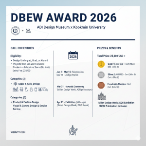 – 2026년 1월 1일부터 3월 15일까지 전 세계 학생 및 교육자 대상 작품 접수 – 총상금 25,000달러 규모, 수상작은 밀라노 디자인 위크 전시 기회 제공