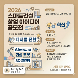 • [공모전] ‘2026 스마트건설 창업 공모전’ 개최 총상금 4천