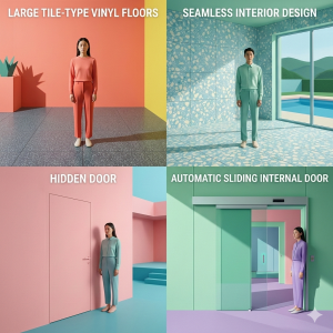 – 바닥재는 ‘대형 타일형 강마루’와 ‘오크’의 귀환 – 벽지는 ‘고급화·내구성’ 강화, 도어는 ‘히든·아치·펫’이 대세 – 편리미엄 앞세운 ‘자동 중문’ 주거 혁신 주도